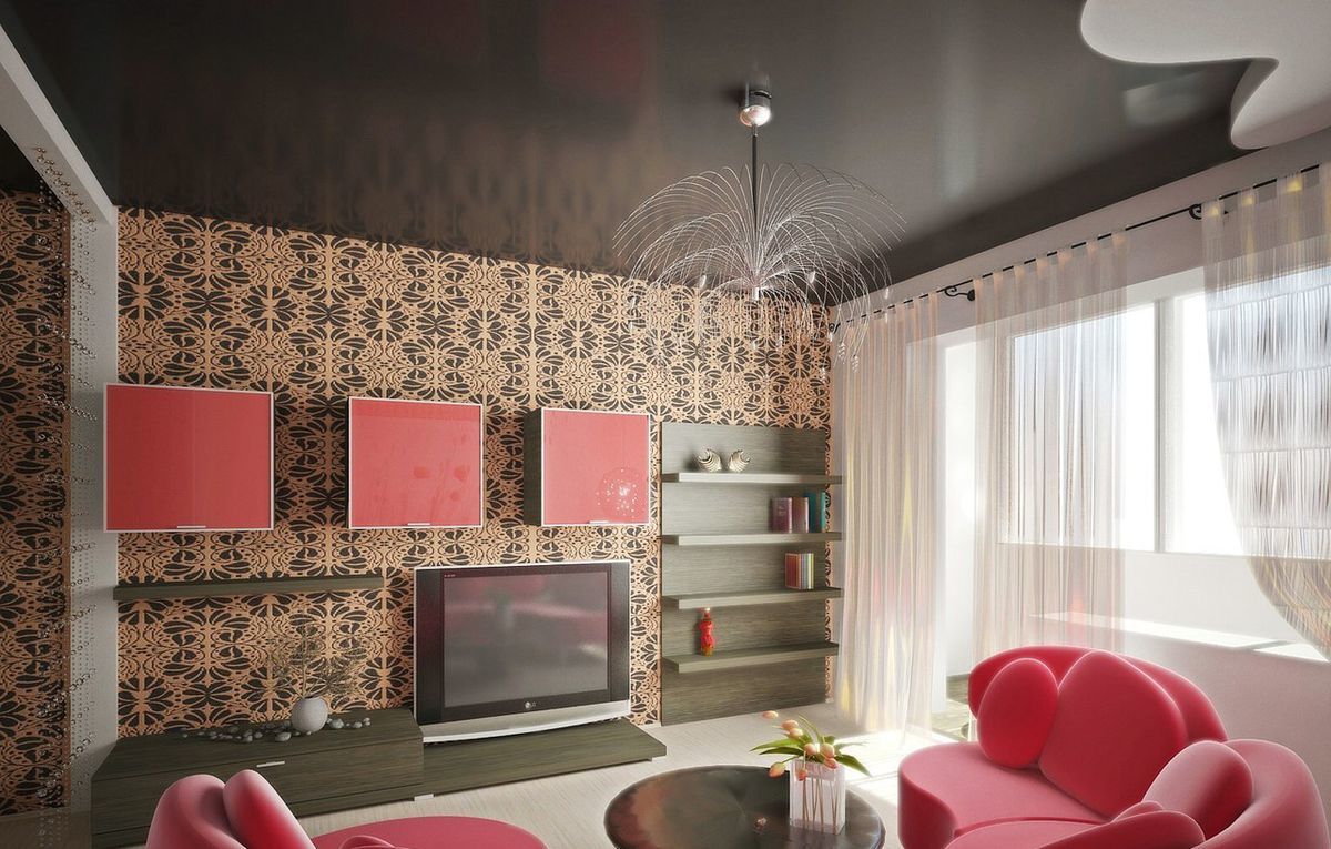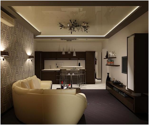 - Dans le salon sera approprié lampe de plafond nuances froides. avec des éléments supplémentaires (mais ils ne doivent pas être massifs). Les plafonds miroirs sont idéaux: reflétant la lumière du lustre, la pièce semblera plus spacieuse. Pour le rendre encore plus confortable, vous avez besoin d’un éclairage puissant.par conséquent, il ne faut pas ignorer le type d'ampoules. Compact, mais les attributs créatifs seront le point culminant de la pièce ou son accent brillant