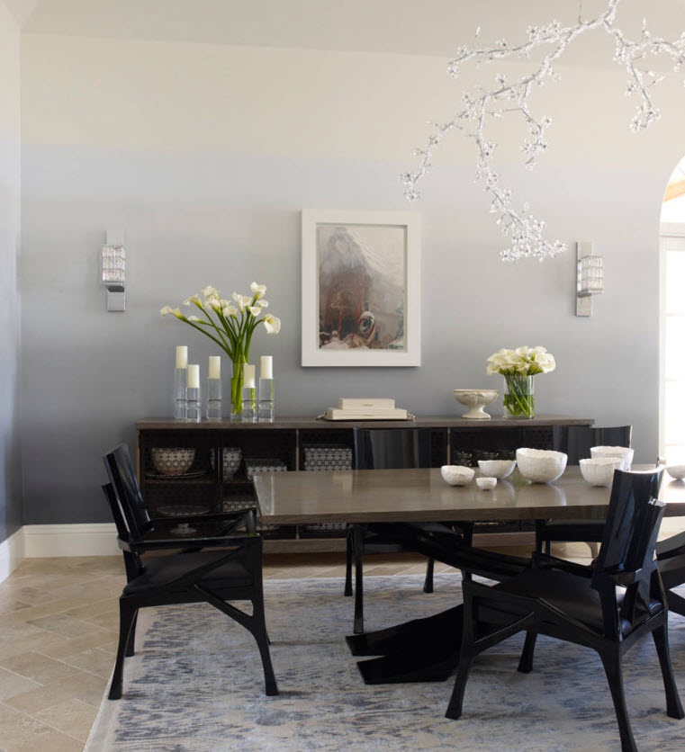 - Lorsque vous vous trouvez dans un cadre luxueux et que vous souhaitez le souligner à l'aide de l'attribut éclairage, mais que la pièce a des plafonds bas, vous pouvez acheter un lustre en cascade avec de petits éléments en cristal suspendus. Cependant, la surface de la pièce doit être grande pour qu’un tel produit ne paraisse pas trop volumineux. Voici un autre exemple pour les fans de lustres en cristal: