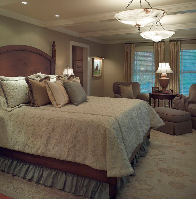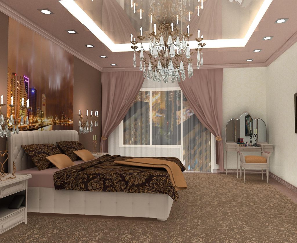 - Lustre avec plusieurs nuances de couleurs vives serait hors de propos dans la chambre à coucher. Dans cette pièce, détendez-vous et reposez-vous confortablement, ce qui signifie que les couleurs riches et une lumière trop vive ne doivent pas irriter les yeux. Lustre de plafond pour la chambre à coucher devrait avoir un look plus simple que pour le salon, afin de ne pas empiler une pièce avec des plafonds bas.