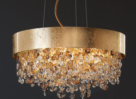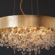 Un lustre en cristal avec de beaux détails est comme une véritable œuvre d'art. De tels modèles peuvent ressembler à un gâteau: un design chic, des détails soignés, de nombreux pendentifs en verre et de superbes jeux de couleurs. Certains modèles peuvent être décorés avec des bougies allumées ou de la meringue en vrac. Le diamètre peut aller jusqu'à 60 cm.
