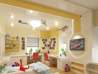 - Le lustre pour plafonds suspendus peut servir de source de lumière principale ou peut être complété par des projecteurs. Cette combinaison semble appropriée, mais pas avec tous les modèles. Si vous envisagez d’organiser l’éclairage avec plusieurs types de lampes, choisissez un lustre non encombrant sans éléments longs.