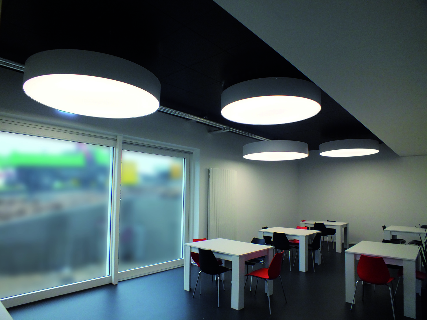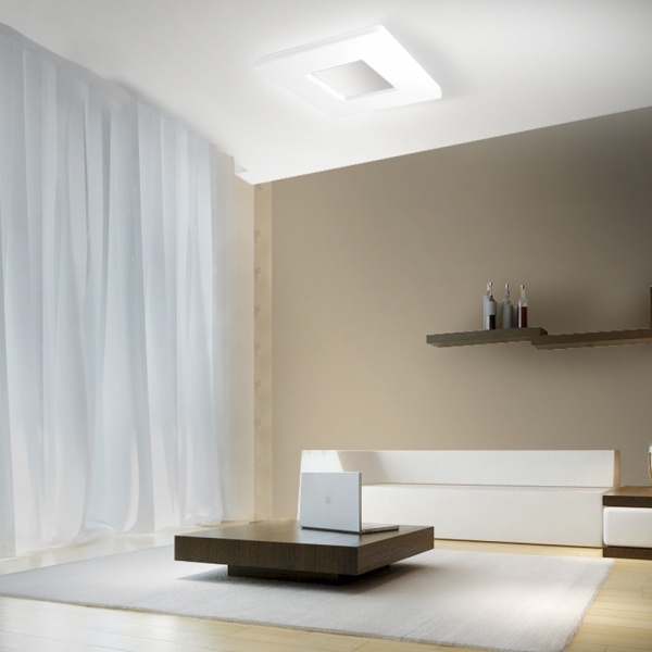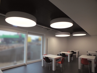 Au bureau, en classe ou en studio, vous pouvez utiliser des lustres à LED de formes simples. La lumière blanche vous aidera à vous adapter rapidement à une ambiance de travail et la possibilité de régler la luminosité de la lumière vous permettra d'ajuster la lumière et de ne pas fatiguer les yeux.