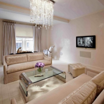 - La taille du lustre de plafond est très importante. Avant d'acheter, vous devez vous assurer que ce modèle conviendra à cette pièce. Un grand lustre dans un petit salon sera absolument hors de propos.