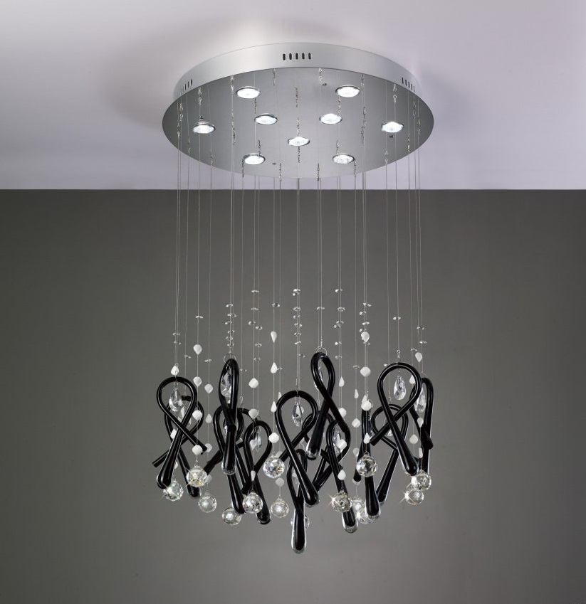 Chaque modèle de lustre peut être fabriqué en différentes couleurs. Pour le salon ou la salle à manger est parfait clair de lune dispersée. Et pour la chambre à coucher - la lumière apaisante d’une bougie chaude. Au bureau et dans la cuisine, il est préférable d’utiliser des DEL à lumière blanche froide.