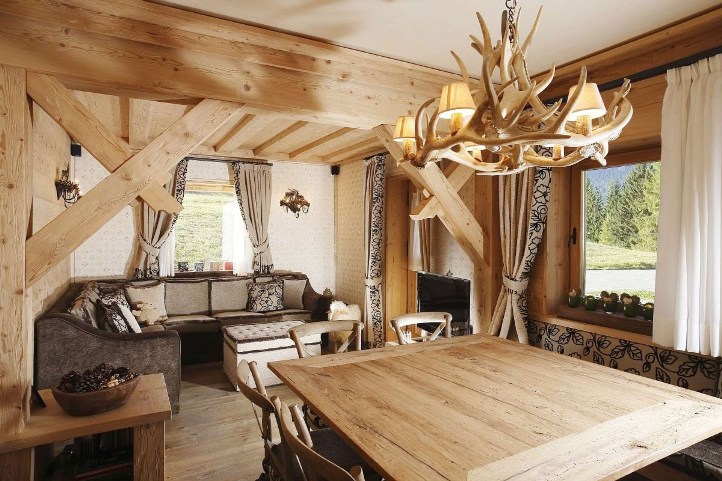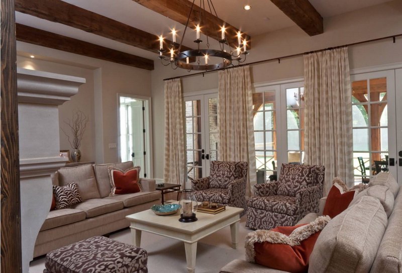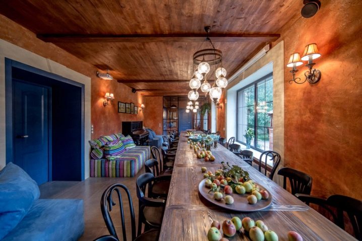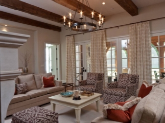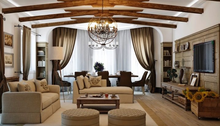 Le lustre de style campagnard est idéal pour le même style de décoration de la pièce, car il ne conviendrait guère de placer un tel modèle, par exemple dans le style d’une salle high-tech, du moins cela paraîtrait-il plutôt étrange. Si vous avez déjà décidé d'acheter un tel modèle, il est très important de choisir la bonne taille. Par exemple, pour les grandes surfaces, vous devez choisir des modèles massifs de lustres. Particulièrement avantageux, ils regarderont s'il y a de hauts plafonds.