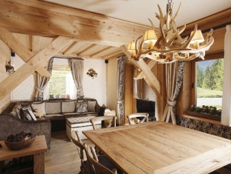 Pour créer des lustres dans ce style, les maîtres de la décision utilisent activement une variété de verre, de bois et les textiles les plus insolites. Les modèles les plus avantageux de lustres en bois, fabriqués sous l'ancien, qui sont souvent présents frottement artificiel et la rugosité.