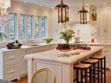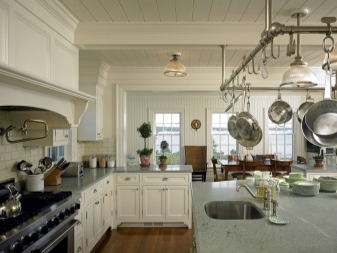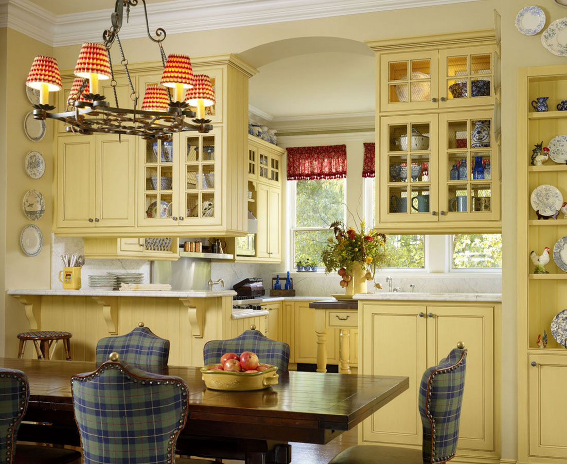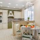 - Dans la cuisine toute la famille se réunit à la table tous les jours, elle doit être remplie de lumière et de réconfort. Au-dessus de la table à manger, vous pouvez placer un lustre en fer forgé robuste décoré avec un effet vieillissant.Les ampoules à bougies ajouteront encore plus de chaleur au foyer familial, et le décor en forme de vigne ou de ramure d'olivier dans la cuisine sera très harmonieux et approprié. Le lustre en forme de lampadaire aura également l’air original. Ici, il est permis de délibérer sur la négligence, les grosses pièces de métal et de bois, les chaînes.