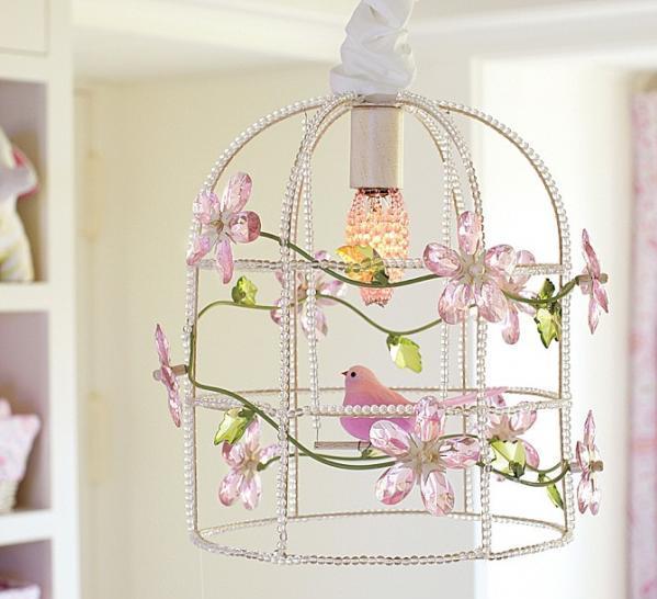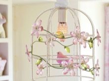 - Chambre d'enfant peut être décoré avec un lustre en vitrail, il aura l'air brillant et inhabituel. Les lustres en forme de cage avec un oiseau décoré de branches en fleurs seront très intéressants.