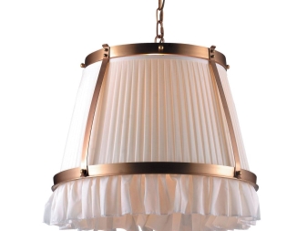 Le point culminant de ce salon branché est une belle nuance textile de délicate couleur pistache. Ce lustre est décoré d'entrelacs métalliques laconiques de couleur or antique. Dîner à la lumière d'un tel lustre, vous éprouverez certainement un plaisir particulier!