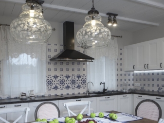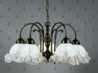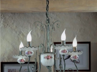Les plafonniers combinent plusieurs types de matériaux. Par exemple, base en métal, abat-jour en dentelle et pendentifs en cristal. Les motifs des lustres dans le style de "Provence" sont généralement massifs, un peu rugueux.
