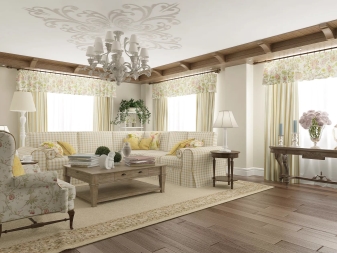 La "Provence" moderne à l'intérieur est semblable aux styles de "Country" et "Tiffany" et est combinée avec succès. L'essentiel - garder la simplicité et les traditions provinciales. En choisissant un lustre, il est important de rappeler que luxe et faste sont sans importance ici.
