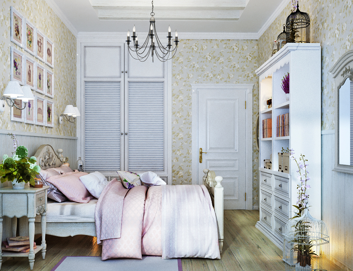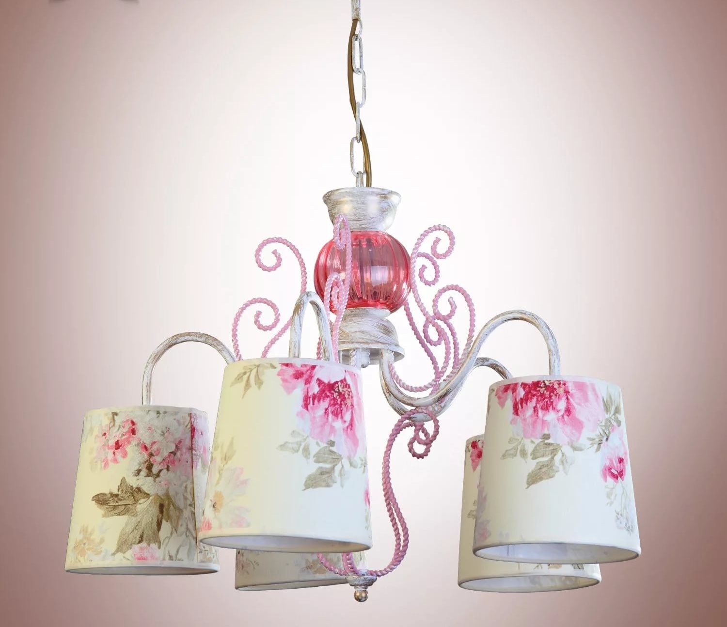 - Pour la chambre Il convient de considérer les versions plus douces et romantiques des lustres et des lampes. Par exemple, un lustre léger décoré de délicates fleurs en porcelaine rose ou lavande. Toutes sortes d’abat-jours en tissu brodés de franges, volants et volants conviendront ici.