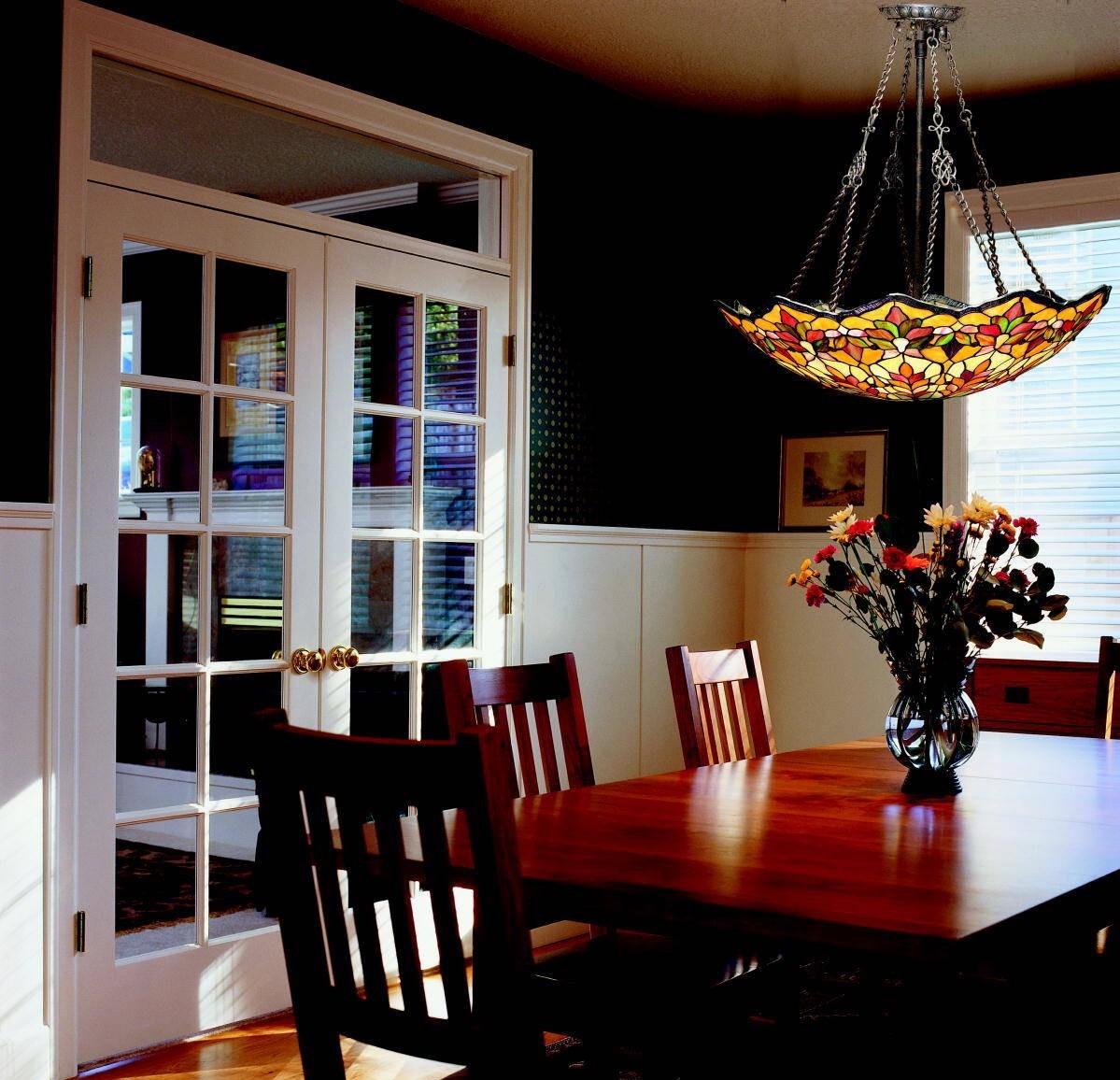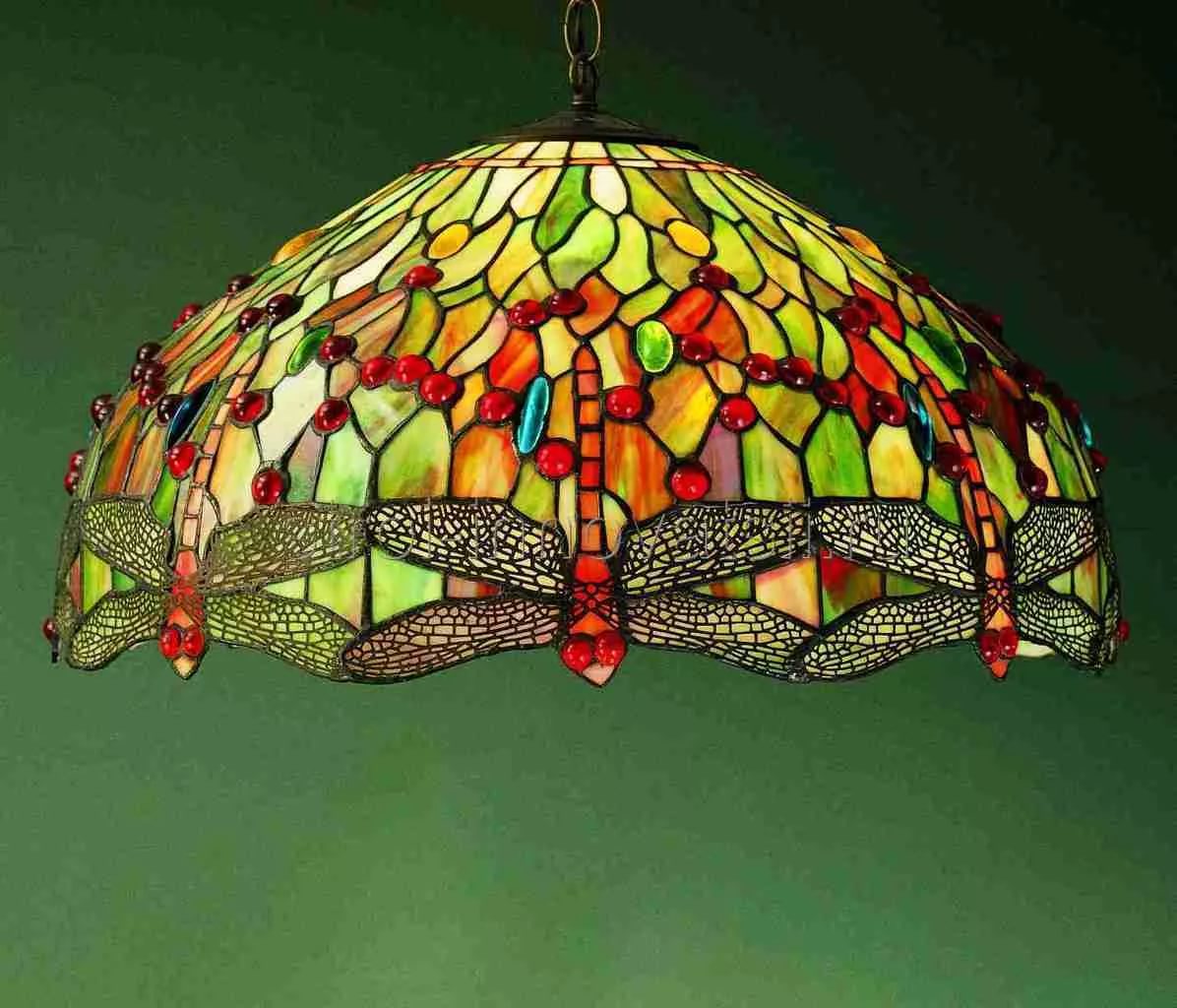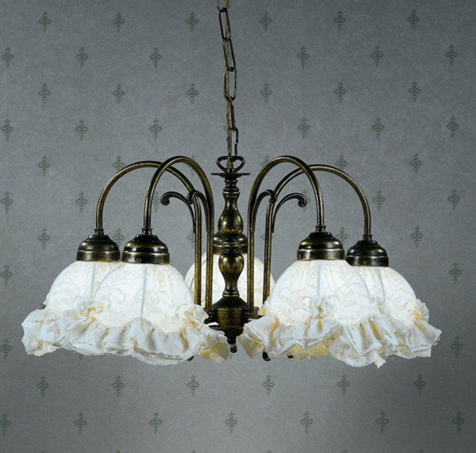 Lustre de style provençal classique - structure en métal forgé, plafond en tissu avec dentelle et volants, lampes à bougies, décor avec des motifs floraux.Un lustre en vitrail peut devenir l’accent de couleur principale d’une pièce, le remplir de couleurs et créer l’ambiance de tout l’intérieur.