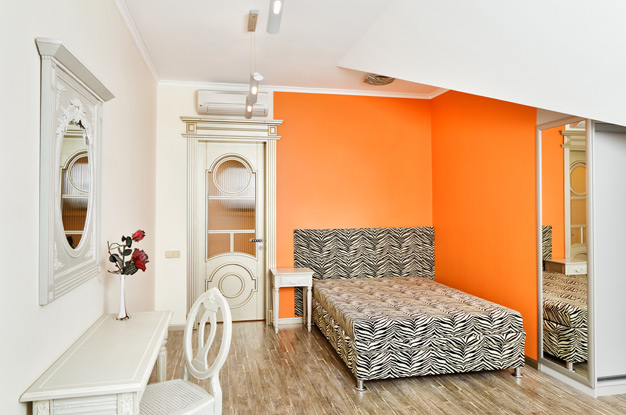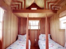Dans le choix du mobilier est de privilégier les lits simples sans éléments sculptés. Le lit peut avoir une petite tête de lit. Les meilleurs accessoires seront les tables de chevet. Ils diffèrent des formes minimalistes avec une fonctionnalité suffisante.