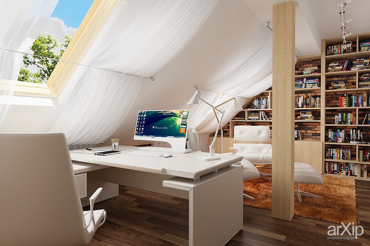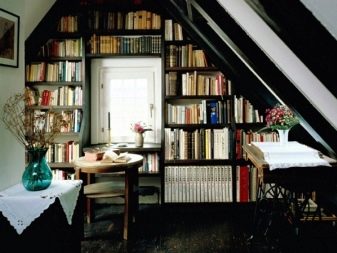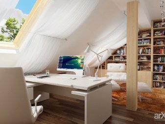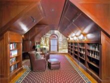 Outre les solutions classiques, l'aménagement du grenier pour d'autres types de pièces et ses meubles est en train de changer. Par exemple, pour une étude dans le grenier mis le bureau, mettez le matériel nécessaire. Au-dessus de la table afin de gagner de la place, installez des lampes.