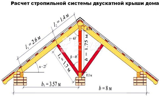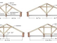 Souvent, l'angle d'inclinaison obéit aux conditions météorologiques d'une région donnée.Si nous considérons une structure avec une perspective brisée de 4 pentes, l'angle des pentes les plus basses par rapport au sol est de 60 degrés. Dans ce cas, la tige à la base sera située à un angle de 30 degrés. Préparation calcule la charge et les pentes dues aux précipitations, y compris la neige et le vent, de sorte que plus la pente est raide, plus la charge du vent est forte.