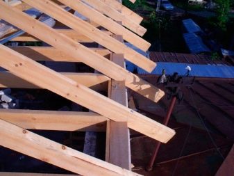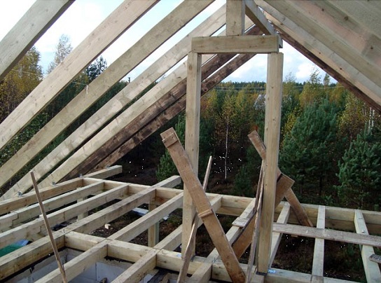 La deuxième option nécessite la construction de supports supplémentaires. Plus souvent dans la construction du toit et utiliser ceux-ci et d'autres. Par conséquent, pour les pentes supérieures, préparez des poutres de poutres suspendues et pour les faces du quai - inclinées.