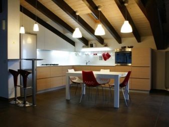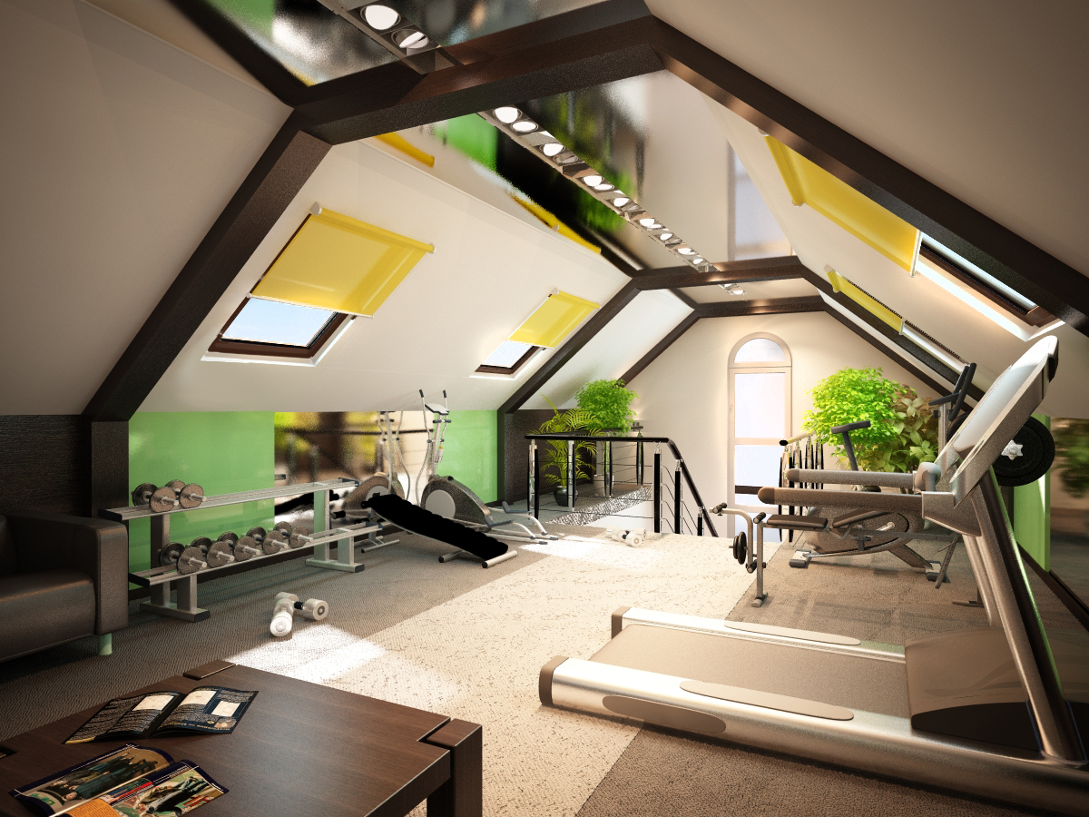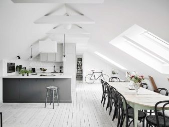 Cette désignation du grenier implique la présence d'un système de ventilation. Ne surchargez pas la pièce de meubles encombrants. Il est préférable que ce soit des armoires murales intégrées, peut-être des comptoirs de bar ou des tables et des chaises plutôt étroites. Si l'espace est limité, effectuez un arrangement linéaire du mobilier.