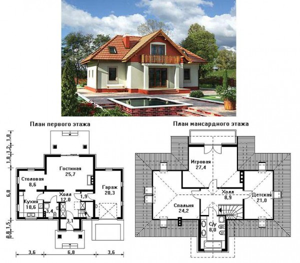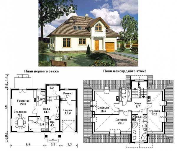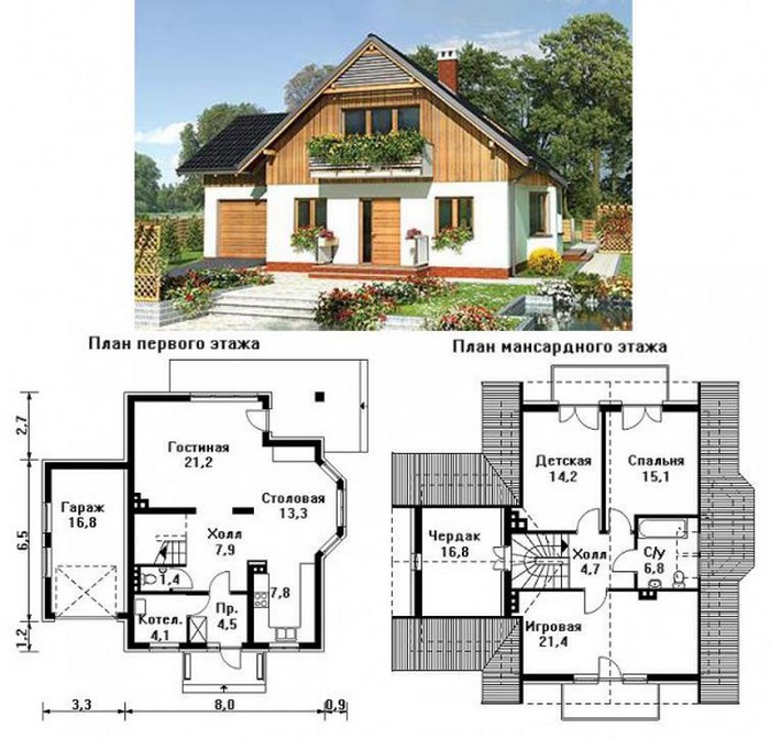 Ces options utilisent plus efficacement l'espace interne. Cependant, ils ne suffisent parfois pas pour assurer un confort maximal aux ménages ou à leurs invités. Cela est dû à la pente du toit et, par conséquent, à la hauteur minimale des murs pour une utilisation efficace. De tels bâtiments limitent la liberté de mouvement dans le grenier, nécessitent une approche solide de la hauteur des murs, ce qui est souvent difficile pour un faible encombrement.