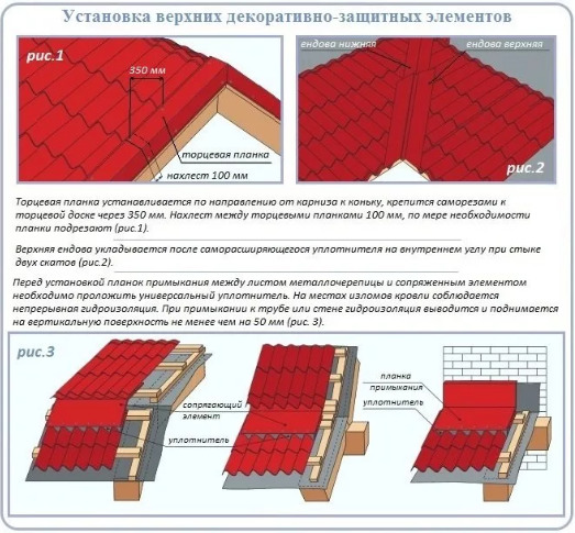 Après cela, il reste à installer des éléments supplémentaires. Chacun d'eux a son propre but. Par exemple, la crête est installée au sommet des pentes afin d’empêcher toute infiltration d’eau entre elles. Afin de protéger les sites d'accostage où l'eau peut couler, ils fixent la barre de coin intérieure. La barre extérieure est fixée pour donner un attrait esthétique et renforcer la protection des articulations.