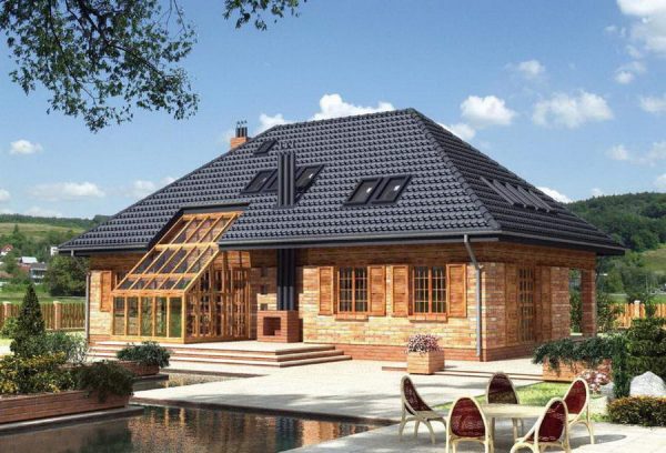 Dans ce cas, le client a la possibilité de choisir la fonctionnalité du toit. Par exemple, vous pouvez choisir des options vous permettant d’aligner l’éclairage de l’espace à la lumière du jour. Dans d'autres cas, le projet comprend la présence d'une véranda ou d'un balcon. Si le client le souhaite, une projection en baie vitrée est conçue. Cette dernière option se caractérise par la présence de grandes fenêtres qui ajouteront de la lumière dans le grenier et le rendront plus facile visuellement.