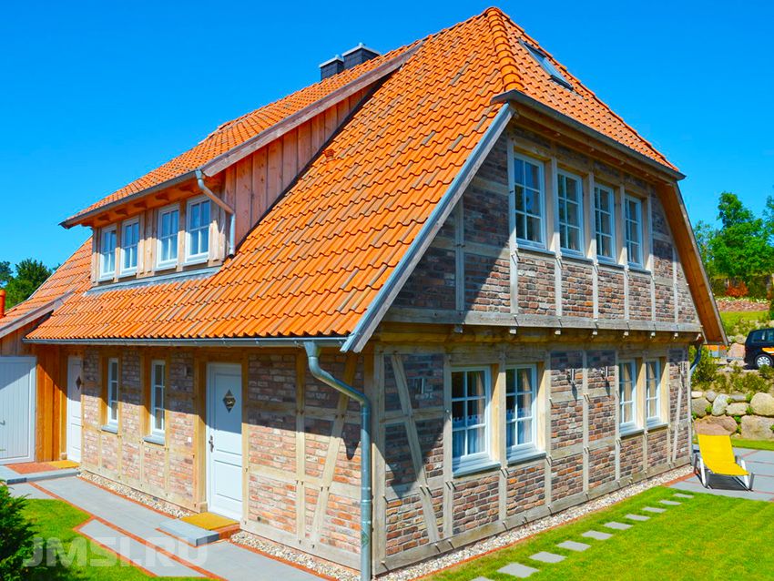 Ces toits en mansarde sont des modifications d'analogues de la hanche. Leur conception est compliquée. Extérieurement, le design semi-articulé a toujours 4 pentes. Cependant, étant donné que 2 d'entre eux peuvent être partiels, cela s'appelle un pignon. Sous les petites pentes de la forme plate, le mur principal de la maison peut être placé avec de petites fenêtres.