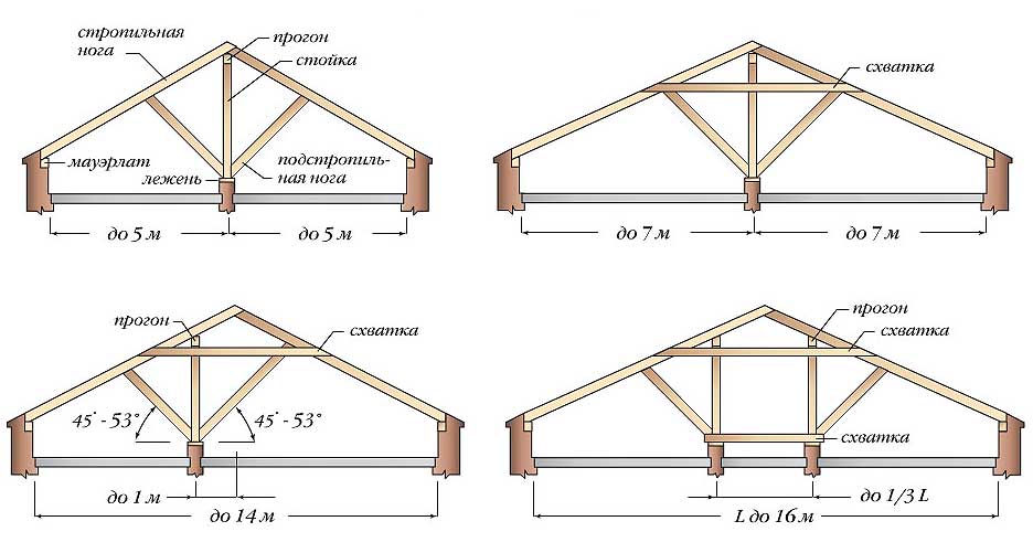 Dans un tel cas, l’angle d’inclinaison du toit ne doit pas être faible (moins de 45 degrés). Dans la plupart des cas, un tel grenier n’est pas facile à régler conformément à la loi, en raison du manque de hauteur des murs et du plafond. Cette option de construction est la moins chère par rapport aux autres variétés. Avec une longueur de base plus grande en plus du pied en treillis dans de tels systèmes, nous devons utiliser une bûche.