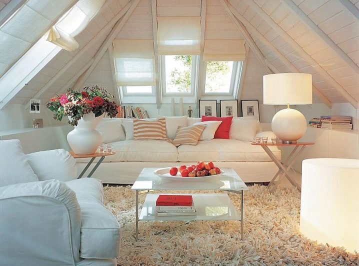 Habituellement, pour un petit grenier, choisissez la technologie oblique. Cela affecte la disposition interne le plus doucement et donne une plus grande quantité de lumière.Les autres types d’installation sont plus difficiles à réaliser, car ils donnent souvent l’impression de surcharger l’intérieur.