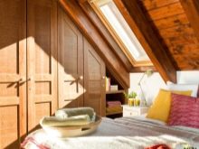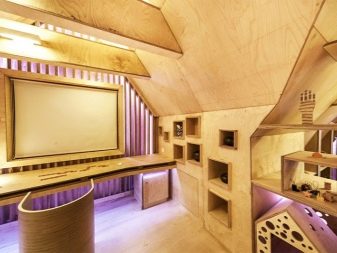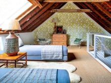 Dans le grenier, l’OSB est utilisé parce que ce matériau ne craque pas, peut être encore amélioré en peignant ou en collant la surface avec du papier peint.