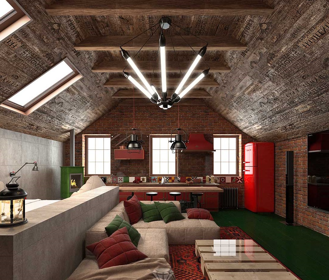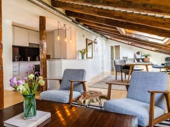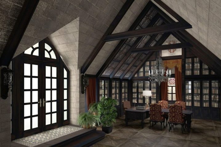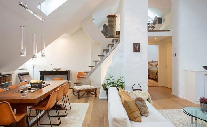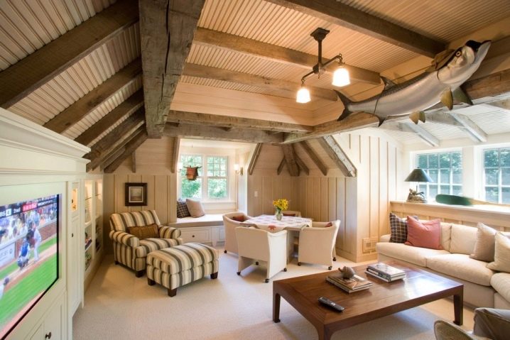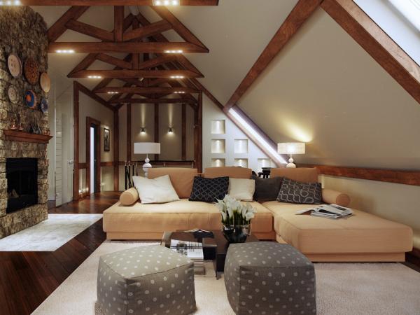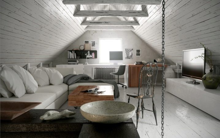 Il est possible de placer une enveloppe en placoplâtre à l'intérieur du grenier pour à la fois la formation de l'apparence d'origine et la couverture des éléments nuisibles à l'apparence.En outre, ce matériau est adapté pour diviser l’espace en différentes pièces à travers des cloisons.
