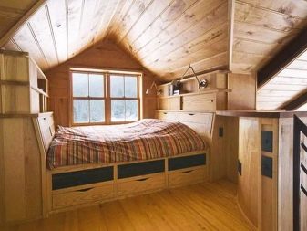 En utilisant le blockhaus, il est possible de décorer l'espace du grenier dans un style écologique ou dans l'esprit de vieilles parcelles russes. Mais pour augmenter la durée de vie des produits, il est conseillé de saturer l’arbre avec une composition spéciale. Le blockhaus connaît un bon contact avec l'eau et n'est pas susceptible à la formation de moisissure.