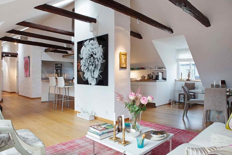 À l'aide de plaques de plâtre, vous pouvez créer diverses partitions, arches, colonnes et plafonds suspendus. Un espace décisif suffit dans le grenier. Après avoir placé ces motifs, vous pouvez les peindre avec diverses peintures ou un papier peint adhésif.