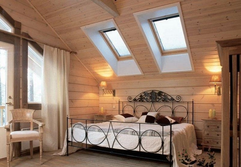 Pour chaque 10 mètres carrés. m étage du grenier devrait représenter 1 carré. m surface vitrée. Mettre les fenêtres trop haut ne vaut pas la peine, car cela empêchera de profiter des paysages extérieurs et ne vous permettra pas d'évaluer ce qui se passe hors des murs de la maison. La surface requise de blocs vitrés est presque indépendante de la hauteur de placement. Le marquage de la face intérieure du mur est strictement requisLors de la découpe de l'imperméabilisation du toit, il convient de laisser 0,2 m autour du périmètre afin de faire apparaître un chevauchement du futur cadre. Tous les blocs de bois doivent être imprégnés de retardateurs de flamme et de substances antiseptiques.