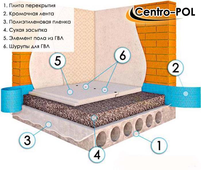 La première étape du travail est toujours la manipulation par chevauchement. Plancher flottant le plus souvent utilisé, nécessitant la création d'une couche d'isolation thermique d'au moins 4 cm et d'une chape sèche. De plus, l'épaisseur totale des sols bruts est au maximum de 25 mm. Chape sèche - généralement des panneaux de fibres de plâtre ou des plaques de plâtre. Les surfaces et les déformations très inégales sont lissées avec de la vermiculite, de la perlite ou de l'argile expansée, dont la couche totale est généralement de 50 mm. Nous devons nous efforcer de faire en sorte que cette proportion se situe dans la région de 25 kg par kilomètre carré. m