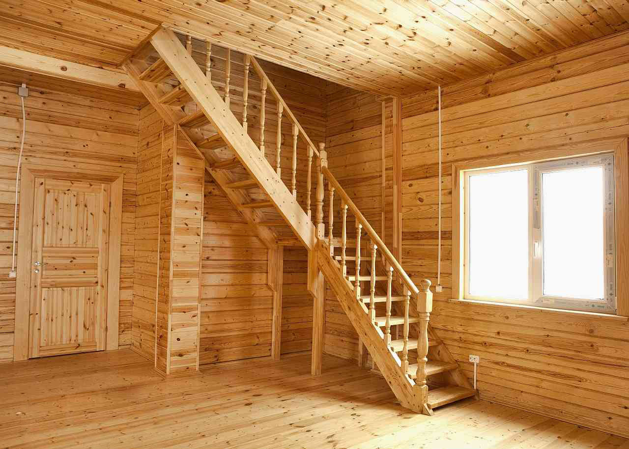 Les meilleurs concepteurs sont prêts à offrir les meilleurs moyens de finir les combles, mais il est beaucoup plus économique de ne pas contacter de spécialistes, mais d'appliquer des approches prêtes à l'emploi et bien développées. La photo montre un escalier avec des éléments décoratifs sculptés - des balustrades spéciales. Dans le contexte d'une maison en bois dans son ensemble, cette décision semble très, très bonne. Mais seulement dans le cas où la couleur de la pièce sera la plus claire possible.