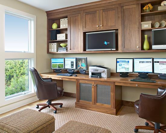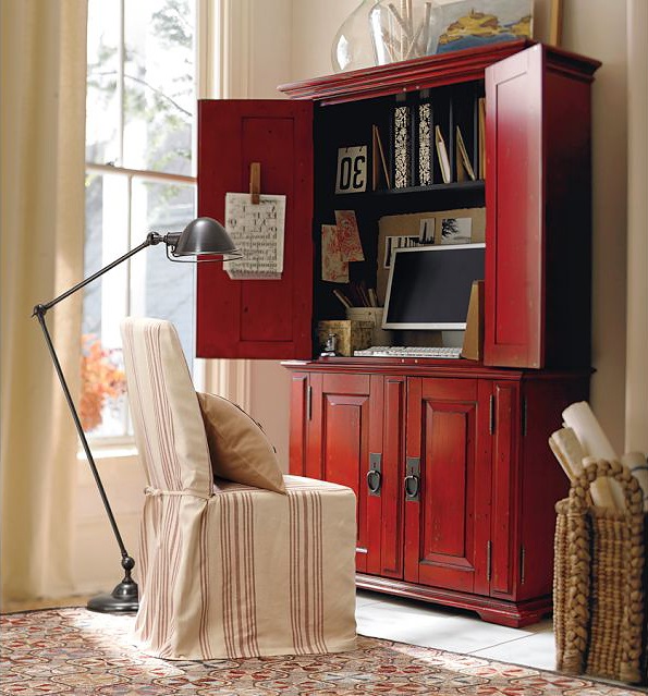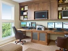 Dans le bureau à domicile, les livres, documents et autres objets importants doivent être placés à distance de marche du lieu de travail. En outre, de nombreux experts recommandent les étagères et armoires nécessaires avec tout ce dont vous avez besoin de placer de manière à pouvoir les atteindre sans vous lever de votre fauteuil.