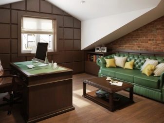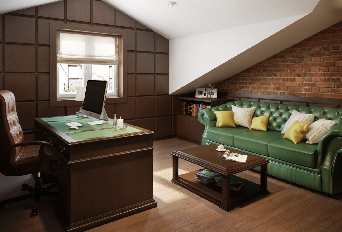L'emplacement de la chaise confortable pour le travail est évident. Il devrait être près de la table. Mais si vous voulez mettre un petit canapé dans votre bureau pour vous reposer, vous pouvez choisir n'importe quel espace libre.