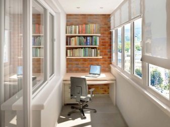 Les gens essaient souvent de placer un bureau à domicile fonctionnel sur un petit balcon. Ces locaux convertis nécessitent une attention particulière car ils peuvent accueillir des meubles extrêmement compacts et légers. Assurez-vous de faire attention au coin et aux tables étroites pour le travail.