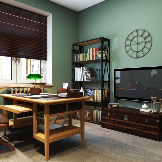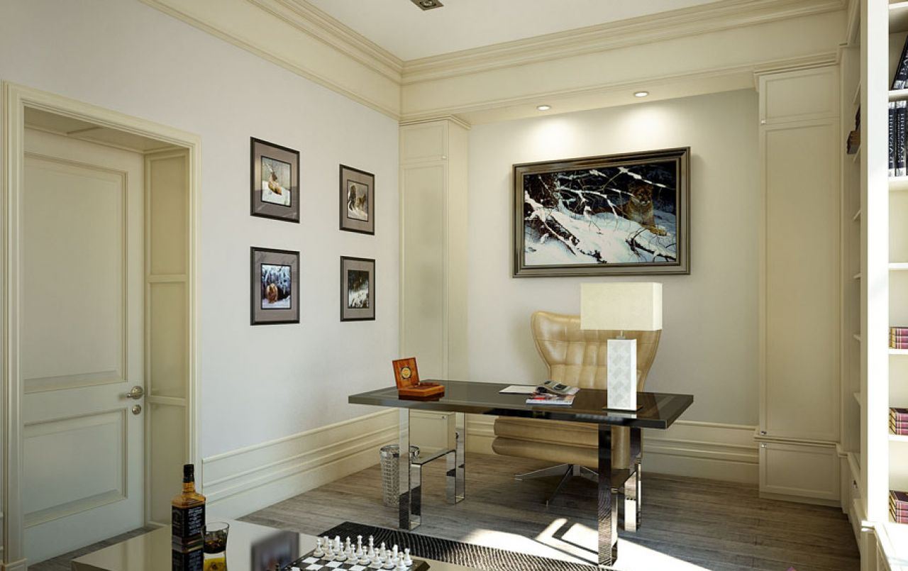 Pour la conception de l'étude, vous pouvez utiliser les styles classiques d'intérieurs ou modernes. Si nous parlons d'un appartement, toutes les chambres sont conçues exclusivement dans le même style.