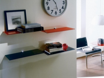 Vous devez d’abord comprendre si vous avez besoin d’étagères à l’intérieur. Le plus souvent, ils sont installés par ceux qui n'ont pas assez d'espace libre dans la pièce. Les étagères murales permettent d'économiser de l'espace. Sur eux, vous pouvez placer tous vos livres, produits cosmétiques, divers bibelots. Si vous avez une petite pièce, installez des produits fixés au mur - une excellente solution.