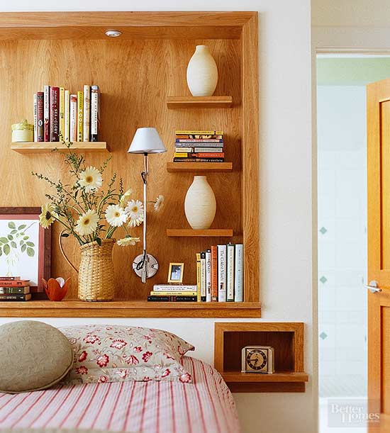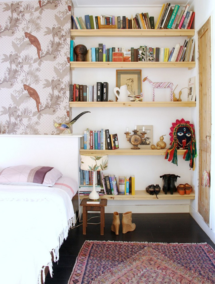 Un autre endroit populaire pour les étagères est la zone de chevet.