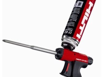 Les professionnels apprécieront le pistolet à mousse «Hilti cf-ds1». Ce modèle est considéré comme l'un des outils les plus optimaux pour une utilisation professionnelle. En apparence, il rappelle assez les armes à feu du même nom et a un corps dense.