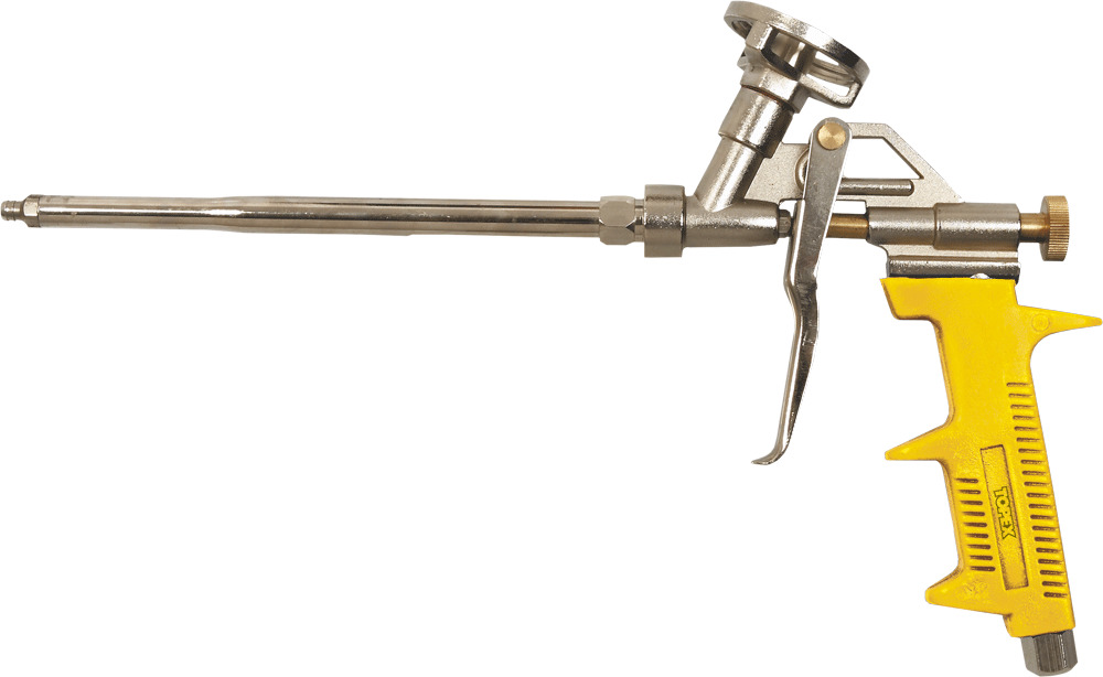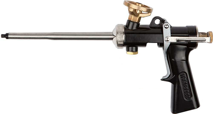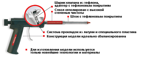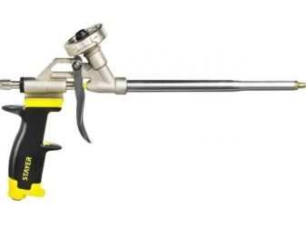 - Pistolets métalliques revêtus de téflon. Ces produits sont caractérisés par un coût élevé et sont généralement destinés à un usage professionnel.L'avantage distinctif de ces modèles est la facilité de les nettoyer des restes de mousse.