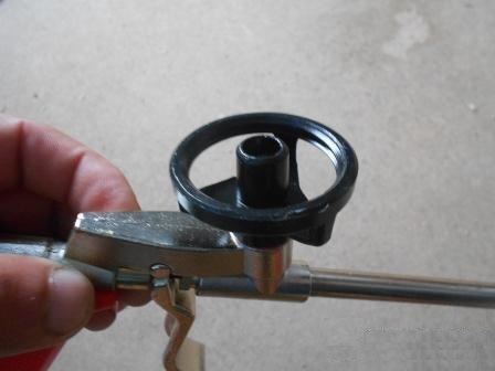 En conséquence, la vanne se ferme, après quoi il sera possible de connecter le récipient de sorte qu'il se trouve sous le pistolet. Les vis de réglage permettent de contrôler la vitesse de sortie de la mousse.Appuyez sur la gâchette doit être aussi lisse que possible, car c’est ce qui vous permet de contrôler la vitesse de la saillie de la mousse.