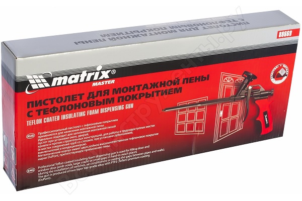 L'un des modèles les plus populaires sur le marché de la construction est le Matrix 88669. Son corps et son revêtement en téflon sont durables et attrayants. En outre, l'appareil est réputé pour son revêtement spécial, qui ressemble dans une certaine mesure à un revêtement antiadhésif sur le plateau. C'est grâce à lui que la mousse est fermement collée dans le tube d'alimentation.