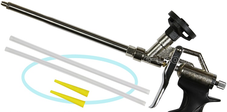 Lorsque vous travaillez avec un pistolet pour le montage de mousse, certains problèmes peuvent être directement liés aux inconvénients de l'utilisation de la conception.Assurez-vous que le cylindre est toujours vertical par rapport à l'outil de construction. Sinon, cela complique grandement l'utilisation de l'outil et peut provoquer sa rupture. Et pour éliminer cet inconvénient, il est souvent nécessaire de recourir à un tube spécial, conçu pour allonger le pistolet.