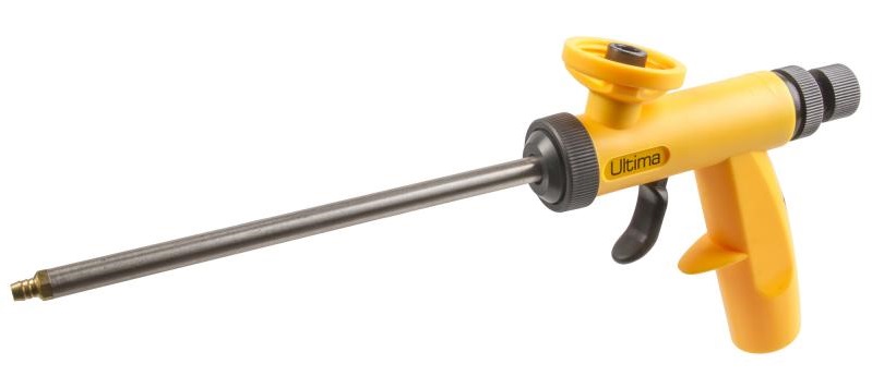- Ultima - est l'un des fabricants d'outils de construction les plus célèbres. La gamme de la société n'inclut pas d'appareils plastifiés, mais il existe de nombreuses options en métal. Les pistolets Ultima se distinguent par le fait qu’ils permettent de contrôler avec précision la quantité de mousse utilisée.