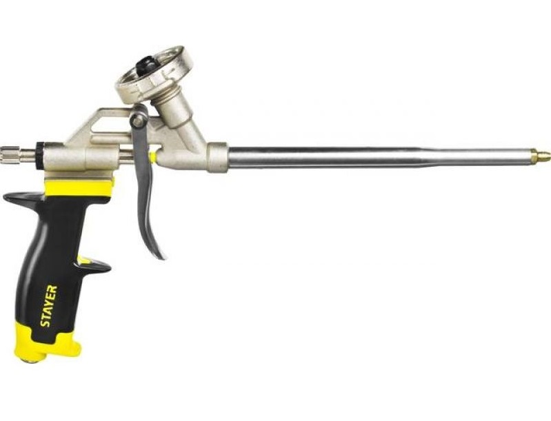 En outre, le Matequs Super Teflon est doté d’une aiguille d’un diamètre élargi de 4 mm.cela permet de combler les fissures à court terme. Malgré son ergonomie, le manche ne convient guère aux personnes ayant une grande main. Parmi les pistolets à usage domestique pour la mousse de polyuréthane, le modèle «Stayer Econom» est très populaire. Sa particularité est la fiabilité et la durabilité. Les développeurs ont équipé l'appareil d'un tube d'alimentation spécial en acier inoxydable, qui est simplement nettoyé et non rayé. Le seul inconvénient est que le tube ne peut pas être retiré pour le rinçage.