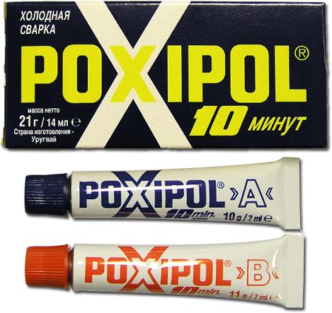 - Le produit «Super Epoxy Moment» de Henkel à usage universel, qui résiste à des températures allant jusqu'à 140 ° C, en témoigne. Des propriétés similaires sont mises en évidence par la composition de Adefal Trading S. A. Poxipol, mais la température de chauffage utilisée ne peut atteindre que 120 ° C.
