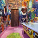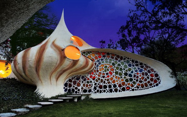 Les murs incurvés, les pilastres comme les stalagmites, les motifs colorés de carreaux et les fenêtres de forme irrégulière ne peuvent être comparés à rien. Ces deux zones sont utilisées dans la décoration d'intérieur.